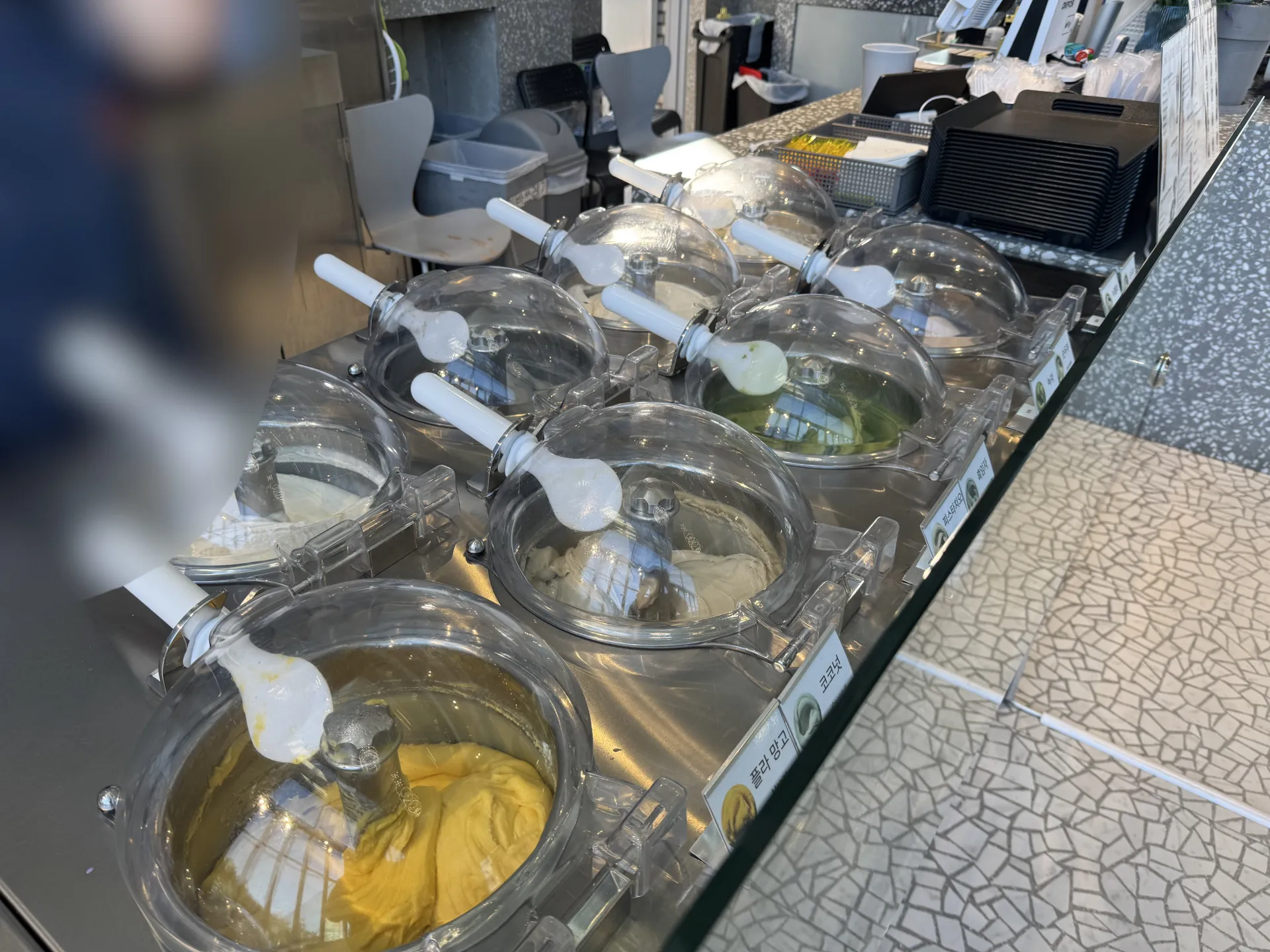 우리가 주문한 젤라또는 약 5분 정도 소요되어 준비되었고, 순두부 젤라또는 연노랑색을 띠고 있었다.