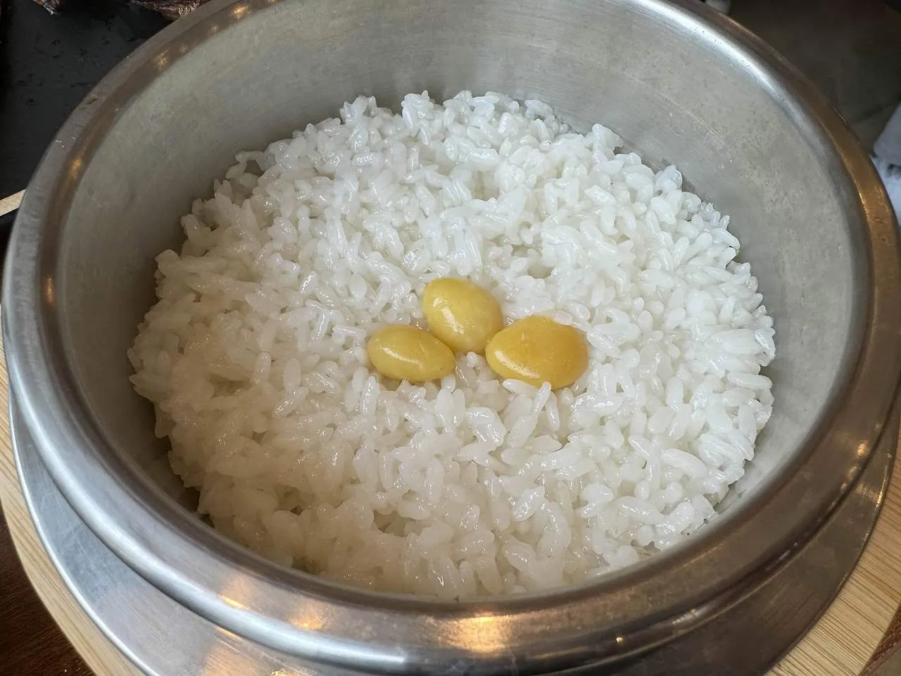 그리고 솥밥의 내용물은 쌀밥과 은행 3개로 이루어져 있었으며, 솥밥을 먹는 방법은 밥을 그릇에 모두 옮겨 담은 후 솥에 뜨거운 물을 부어주어 숭늉을 만들어 주면 되었다.