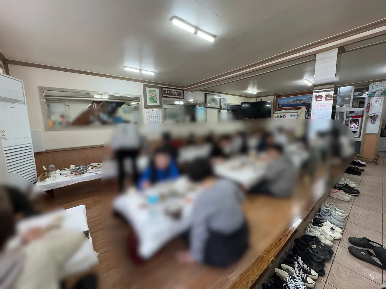우리는 평일 오전 11시 45-50분쯤 백성식당에 찾아갔으며, 백성식당은 일방통행 도로 옆 건물 1층에 위치해 있었다.